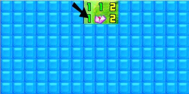 Since we are looking for a crystal to the left of the vertical line of ones, (one of these two, I say to myself, looking at the left two, and not these three, looking at the right ones) I click the 3 squares to the right of the ones I just cleared. Click, click, click.