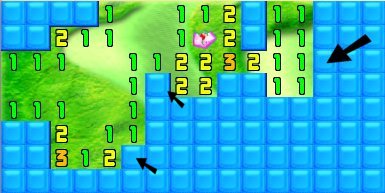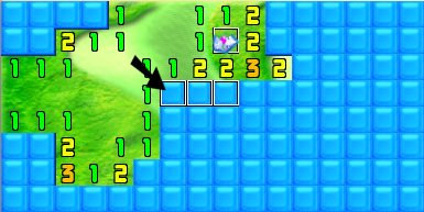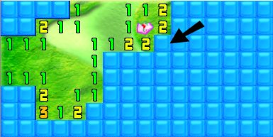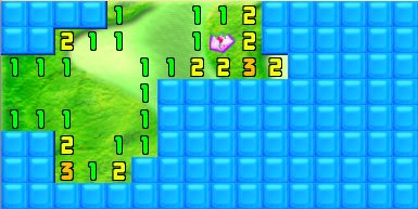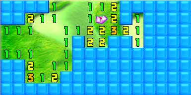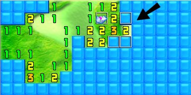 Since the top 1 has a known crystal to the left of it, the square above it is clear, as is the square to that one's right. Click, click.